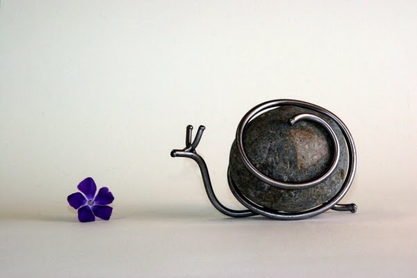 I have to create an inspiring image for my PhotoShop class, so I chose to work with the theme of snails and race cars. During my search for images to play with, I found some of these delightful artsy snails. Enjoy!